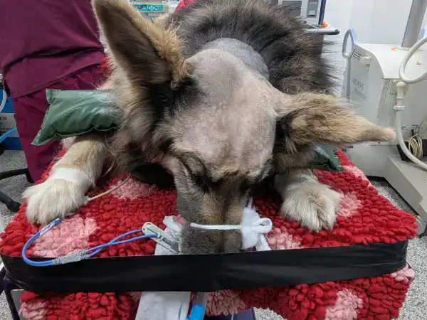 Beau, a 7-year-old male neutered German Shepherd, was referred to us in June 2025 for investigation and treatment of a slow-growing mass on the back of his skull.