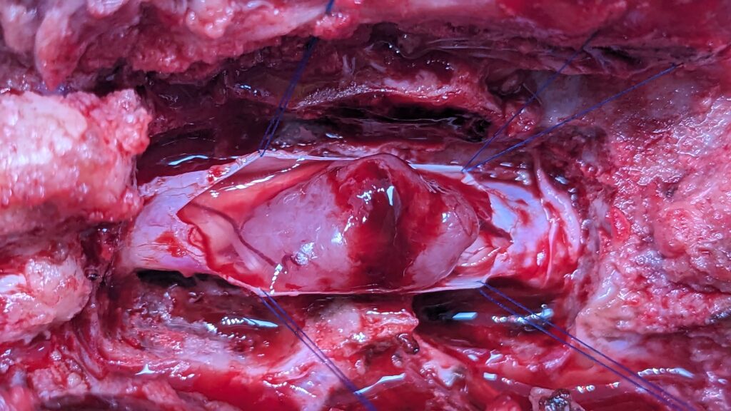We’re pleased to report Bella responded excellently to surgery, returning to a neurologically normal baseline by her 4-week post-op check. Repeat MRI, performed 5-months following the mass removal, documented no evidence of mass re-growth and Bella was doing neurologically well with only a mild pelvic limb paresis.